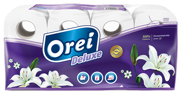 უმაღლესი ხარისხის სამფენიანი ტუალეტის ქაღალდი, რომელსაც გააჩნია სირბილის და მდგრადობის საუკეთესო ბალანსი, იწარმოება 100% ცელულოზის ნედლეულისგან. ხელმისაწვდომია 1, 4, 8 და 32 ცალიან შეფუთვაში.